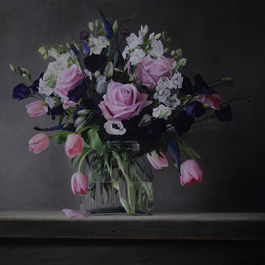 Vaas met bloemen - olieverf op linnen - 80 x 80 cm