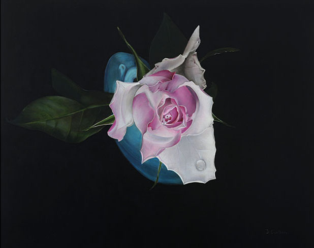 Roos in vaas - olieverf op paneel - 60 x 50 cm