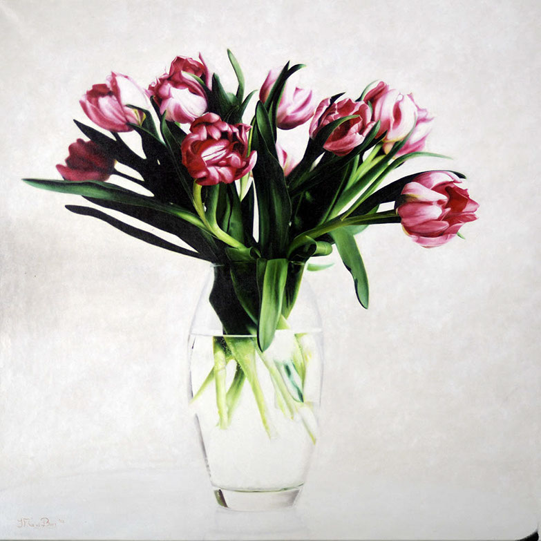 Vaas met tulpen - olieverf op linnen - 100 x 100 cm
